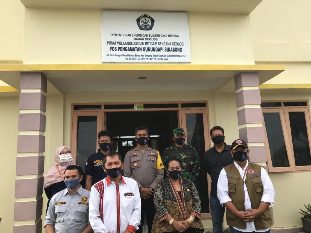 Selanjutnya, rombongan bergerak ke Pos Pemantauan Gunungapi Sinabung yang berada di Desa Ndokum Siroga, Kecamatan Simpang Empat untuk melihat secara visual kondisi Gunung Sinabung.