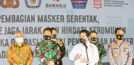 Jakarta, indochannel.id – Pemerintah hari ini mencanangkan Operasi Yustisi yang diawali dengan pembagian 34.355.019 masker secara serentak, untuk membudayakan dan memperketat disiplin protokol kesehatan di kehidupan masyarakat dan penyelenggaraan Pemilihan Kepala Daerah (Pilkada) serentak tahun 2020 di 270 kabupaten/kota. Ketua Komite Penanganan Covid-19 dan Pemulihan Ekonomi Nasional (KPCPEN) dan Menteri BUMN Erick Thohir mengapresiasi berbagai … Lanjutkan membaca Operasi Yustisi Diluncurkan, Dorong Masyarakat Tingkatkan Disiplin Protokol Kesehatan dengan Penindakan Langsung