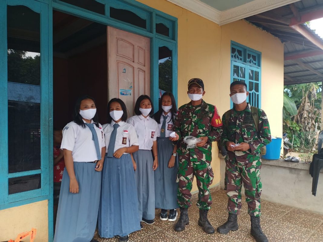 “Tidak henti-hentinya anggota Satgas kami mengajak masyarakat mematuhi protokol kesehatan serta membagikan masker kepada anak sekolah, meskipun belum tatap muka di sekolah, ” tuturnya.
