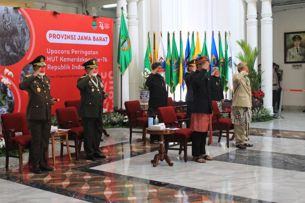 Puncak peringatan HUT ke-76 Kemerdekaan RI dipimpin oleh Gubernur Jawa Barat Ridwan Kamil. Upacara kali ini digelar dengan menerapkan protokol kesehatan yang ketat sehubungan dengan masih dalam situasi pandemi Covid-19.