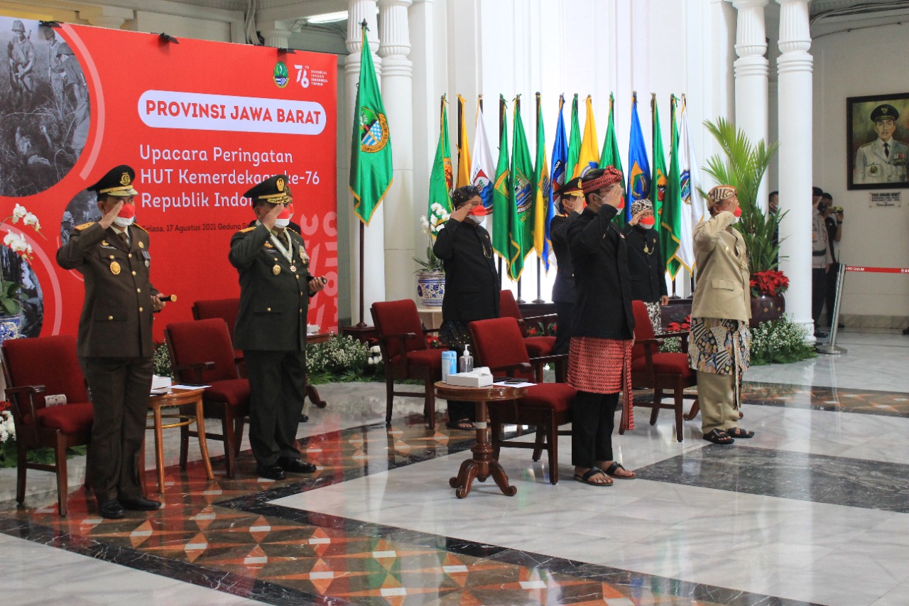 Selain itu, upacara puncak peringatan HUT ke- 76 Kemerdekaan RI di Provinsi Jawa Barat ini berlangsung dengan khidmat. Terlihat semangat petugas dan peserta upacara tampak kompak seiring dan seirama setiap pergerakan dalam pelaksanaan tata cara upacara selama berlangsung.