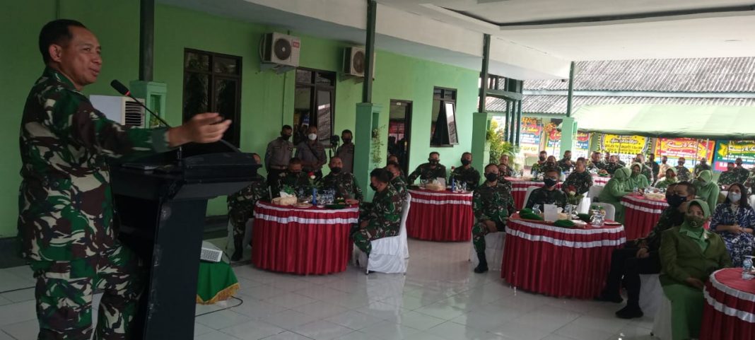 Dilanjutkan dengan ramah tamah dan Pada kesempatan tersebut Danrem 064/MY Brigjen TNI Yunianto diberi kesempatan untuk memperkenalkan diri dan keluarga.