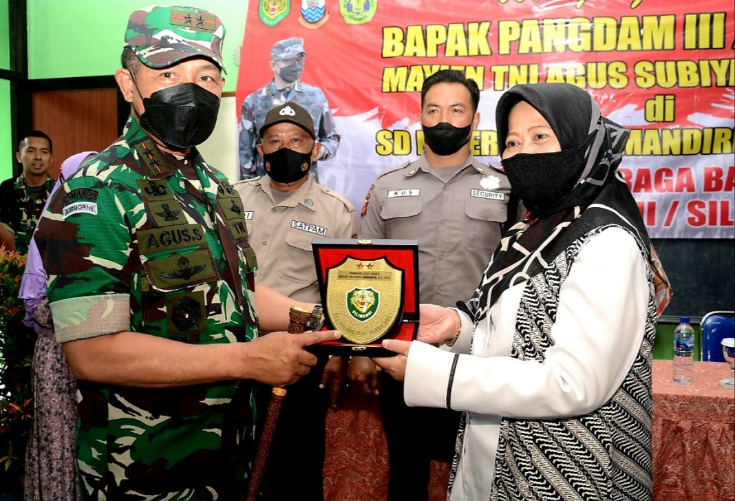 Bandung, IndoChannel.id – Pangdam III/Slw Mayjen TNI Agus Subiyanto didampingi Asintel, Asops, Aslog Kasdam III/Slw, Danpomdan dan Kapendam III/Slw, mengunjungi adik kelas dan sekaligus memberikan bantuan sosial berupa paket sembako kepada dua Lembaga Pendidikan yaitu SMPN 2 Cimahi dan SD Baros Mandiri 4 Cimahi Jawa Barat, Rabu (24/112021).