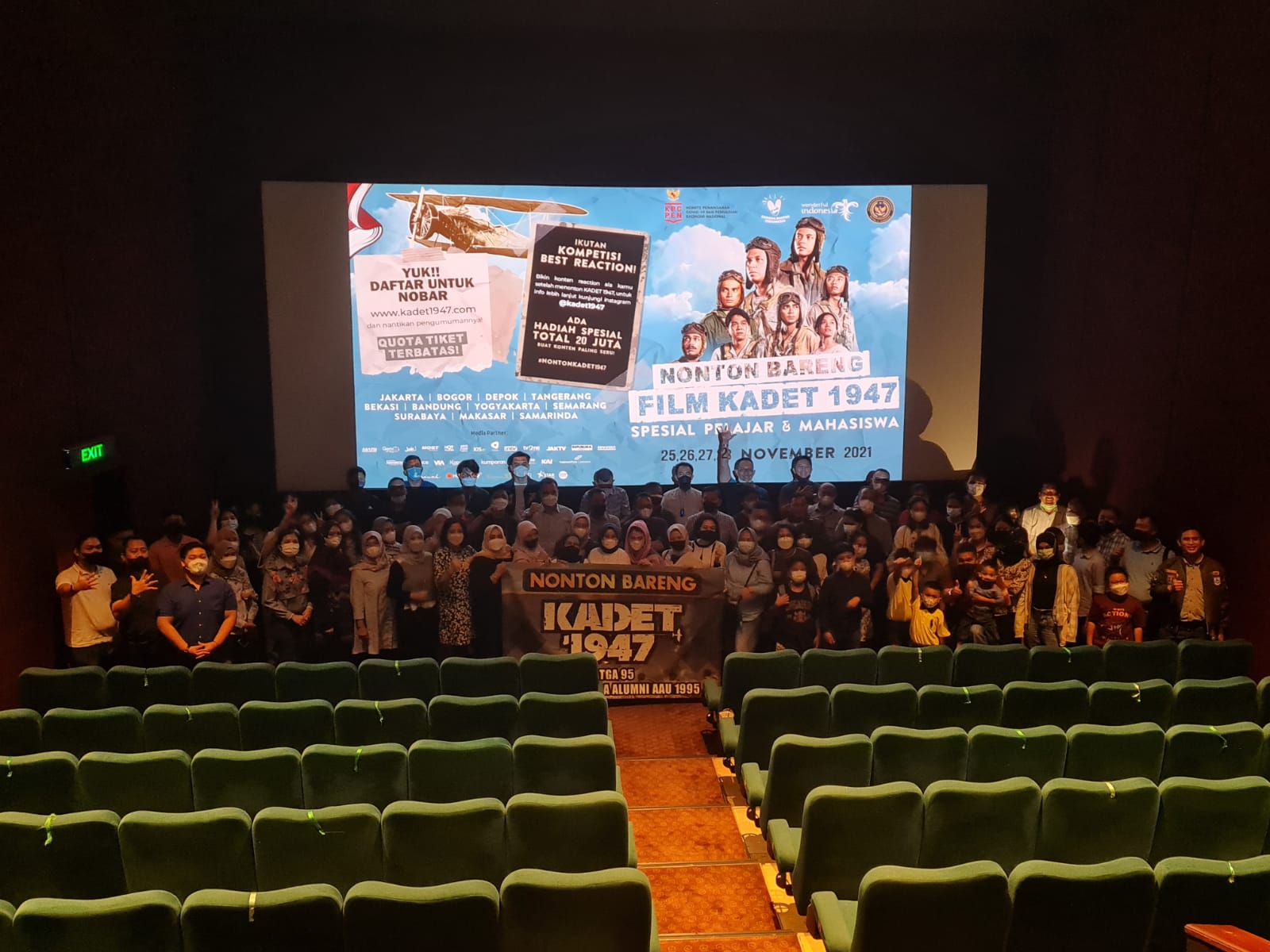 Jakarta, IndoChannel.id – Kegiatan nonton bareng (Nobar) film Kadet 1947 di Jakarta kembali bergulir. Kali ini Nobar dilaksanakan oleh Katga ’95 (Ikatan Keluarga Alumni AAU ’95) dan personel Lanud Halim Perdanakusuma Jakarta, Minggu (28/11/2021).